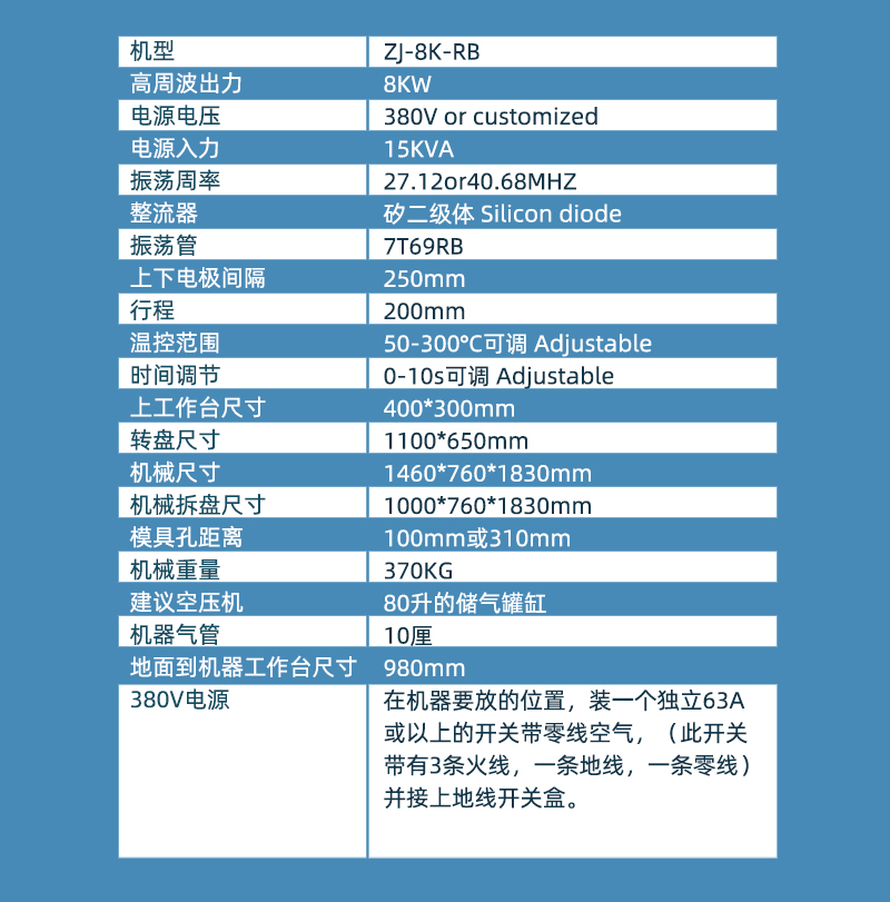 單頭轉(zhuǎn)盤高周波機(jī)的機(jī)器性能: